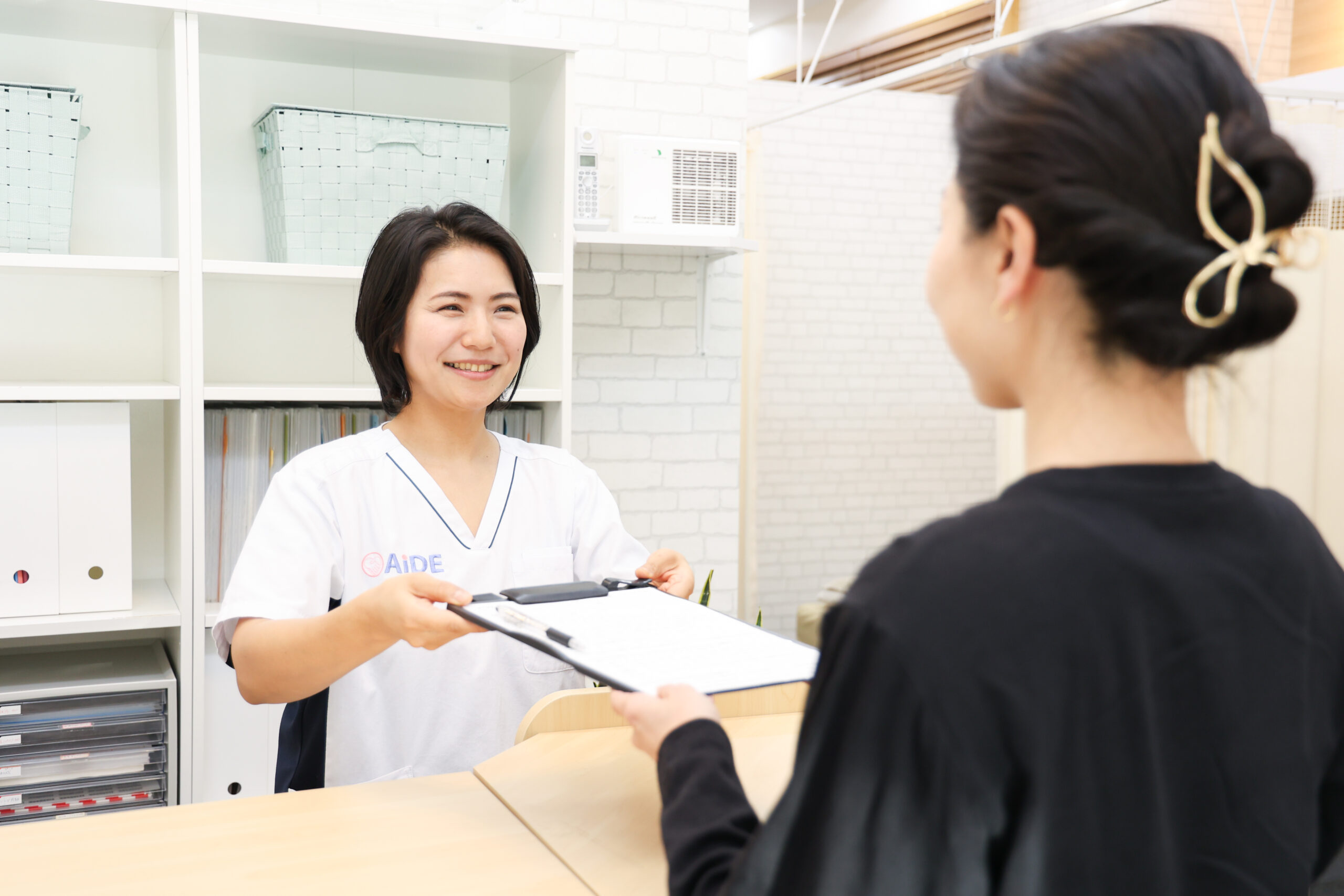 お電話やインターネットからご予約いただけます。予約時間の10分前にお越しください。受付で『初めて』とお伝えいただき、カウンセリングシートをご記入ください。