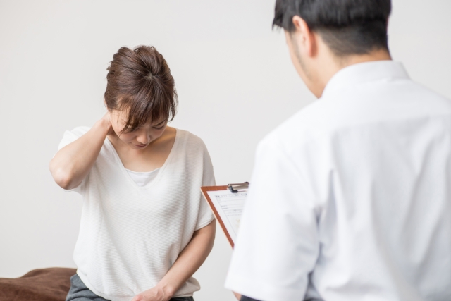 まず行われるのは、**問診や触診(症状のヒアリングと体の状態チェック)**です。