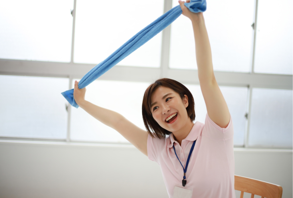 次に、タオルを使った肩甲骨ストレッチです。用意するのはタオル1本だけでOK。