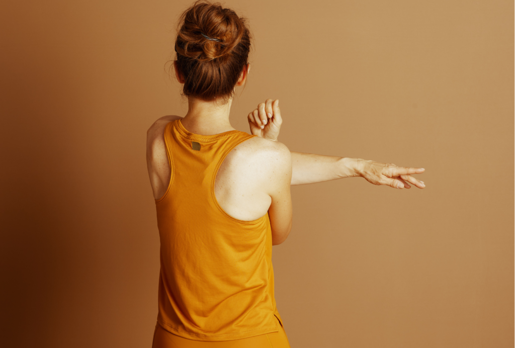次に、肩甲骨周りや肩関節の可動域を整えるストレッチが、痛みの軽減に関係することがあると言われています。